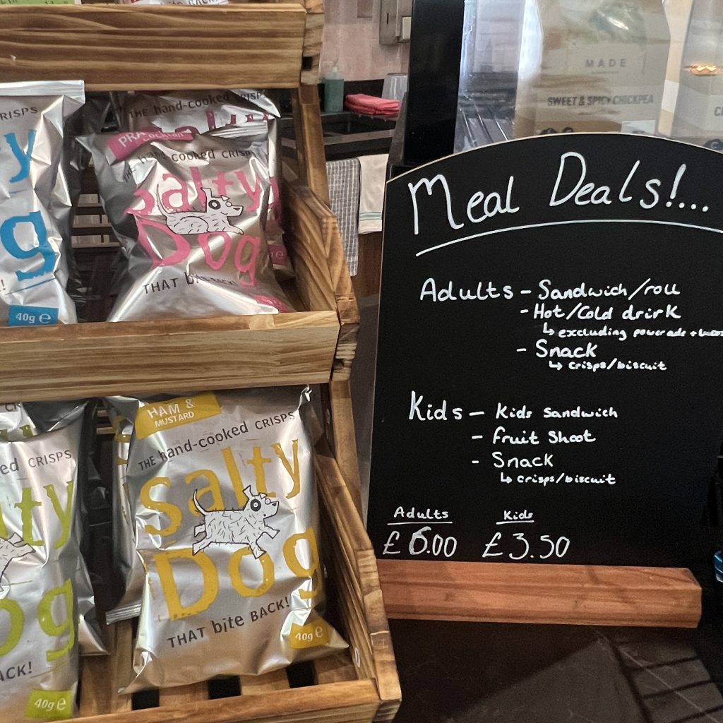 We have meal deals for £6 for adult or £3.50 for kids. The deal includes sandwiches or wrap + choice of drink + choice of snack. Wide range available including healthy options.