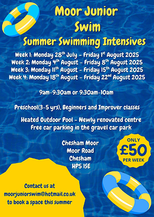 Moor Junior Swim provide 1:1/2:1 swimming lessons in Chesham’s heated open air pool for children, age three and up, and adults. Lessons can be for learning to swim or to improve stroke/skill development. Lessons are 30 minutes long, however if you wish for a longer lesson this is a possibility.
